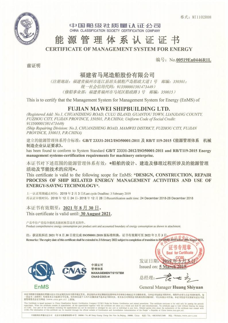 能源管理體系認證證書