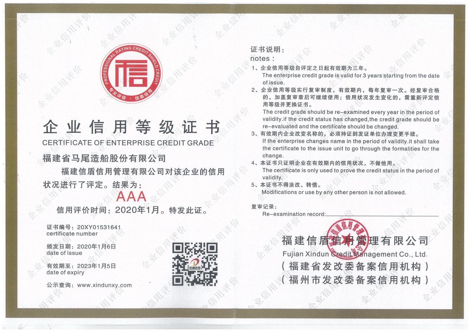2020-2023企業(yè)信用等級證書