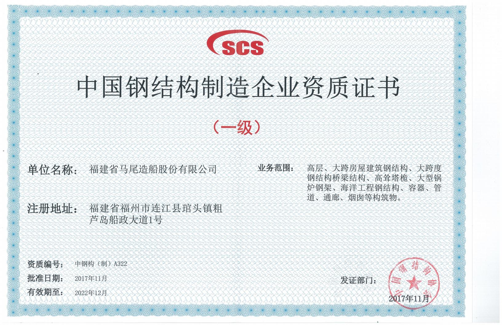 中國鋼結構制造企業(yè)資質(zhì)證書