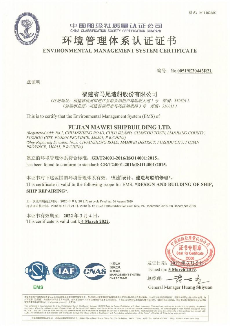 環(huán)境管理體系認證證書
